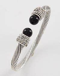 Antique Silver Tone / Black Acrylic / Lead Compliant Metal / Cuff Bracelet • Size Free : CUFF • Width : 1/2"