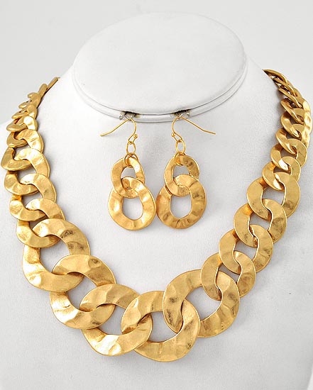 Matte Gold Tone / Lead Compliant / Graduating Metal Link Chain Necklace & Fish Hook Earring Set