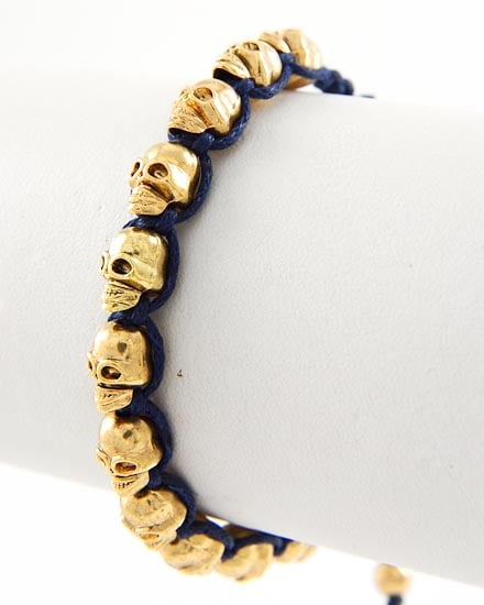 Gold Tone / Dark Blue Cord / Lead&nickel Compliant / Metal / Halloween Theme / Skull Adjustable Bracelet • Size Free : Adjustable • Width : 1/4"