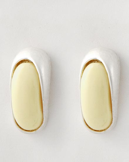 Matte Silver Tone / Cream Acrylic / Button Style / Post Earring Set • Pendant Length : 7/8"