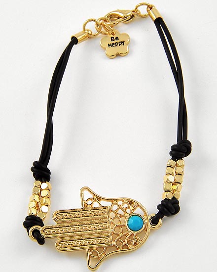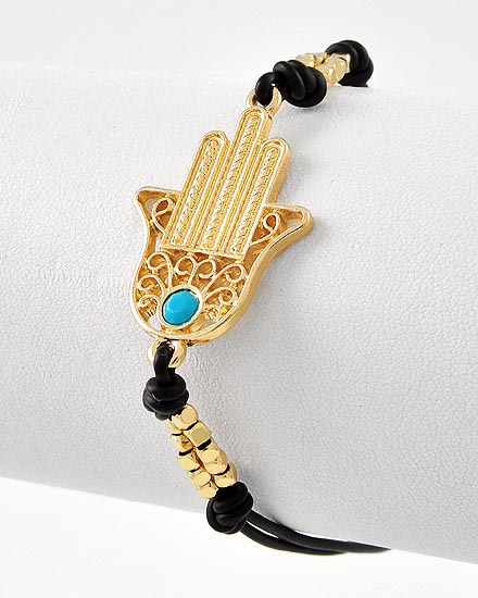 Gold Tone / Black Cord / Lead&nickel Compliant / Lobster-claw / Hamsa Bracelet • Length : 7 1/4" + EXT • Top Face : 7/8" W