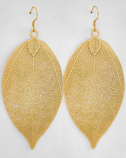 Gold Tone / Lead&nickel Compliant / Perforated Metal / Leaf Dangles / Fish Hook Earring Set • Drop Length : 3 5/8" • Width x Length : 1 1/2" W x 3" L