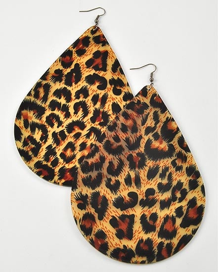 Hematite Tone / Brown-black Leopard Print Acrylic / Lead Compliant / Tear Drop Dangles / Oversized Fish Hook Earring Set