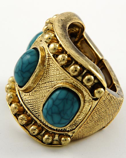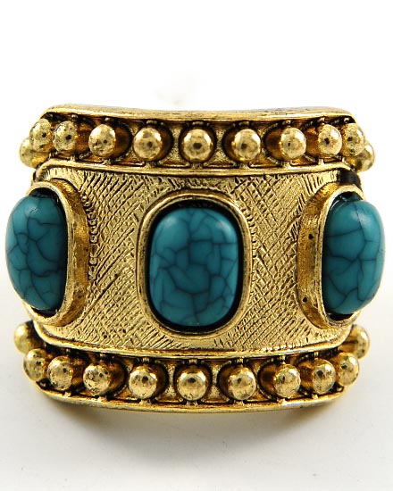 Antique Gold Tone / Turquoise Acrylic / Stretch Ring • Size Free : STRETCH • Top Face : 7/8" W