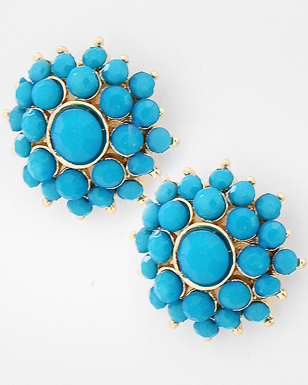 Gold Tone / Blue Acrylic / Lead&nickel Compliant / Flower Button Style / Post Earring Set • Diameter : 5/8" DIA