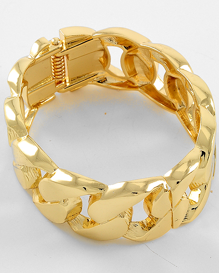 Gold Tone Metal / Chain Style / Fold-over Bracelet • Diameter : 2 1/4" • Width : 7/8"