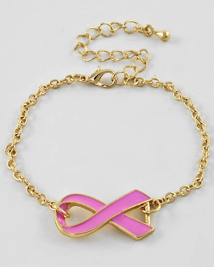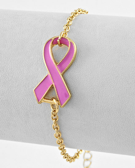 Gold Tone / Pink Epoxy / Lead&nickel Compliant / Lobster-claw / Pink Ribbon Bracelet • Length : 6 1/2" +EXT • Top Face : 1" W X 1/2" L