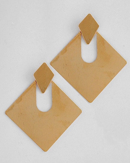Gold Tone Metal / Lead&nickel Compliant / Square Dangles / Post Earring Set • Width x Length : 2 3/8" x 2 3/4"