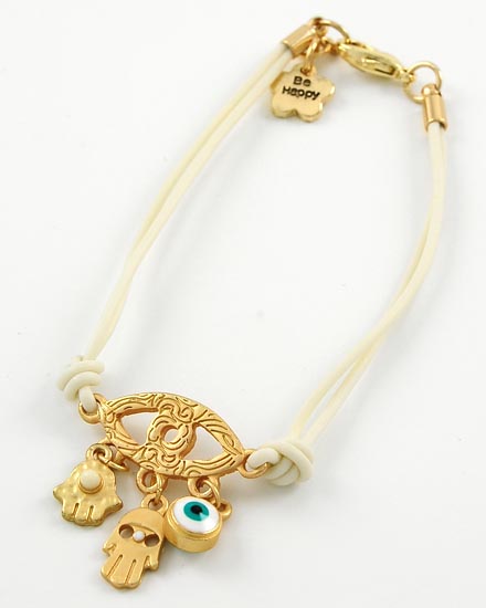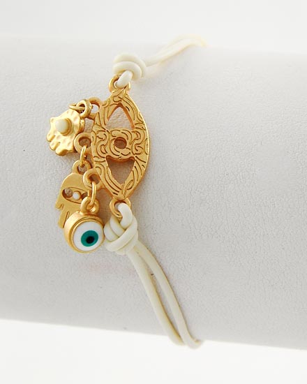 Matte Gold Tone / White Cord / Lead Compliant / Lobster-claw Closure / Hamsa & Evil Eye Charm Bracelet • Length : 7 1/4" • Width : 1/2"