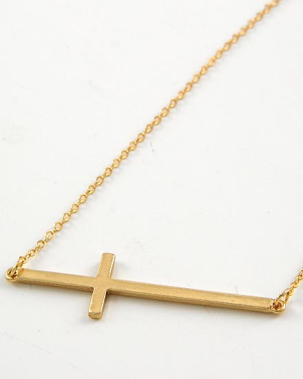 Gold Tone Metal / Lead Compliant / Cross Pendant Necklace • Length : 17 1/2" • Pendant : 2" W