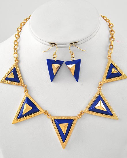 Gold Tone / Blue Acrylic / Lead&nickel Compliant / Graduating Necklace & Fish Hook Earring Set