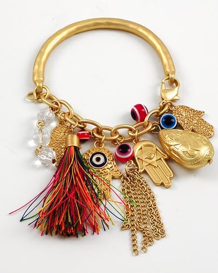 Matte Gold Tone / Multi Color Acrylic & Thread Tassel / Lead&nickel Compliant / Lobster-claw Closure / Evil Eye & Hamsa Charm Bracelet